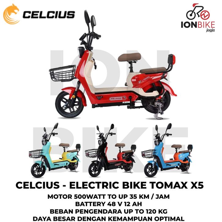Sepeda Listrik Celcius Tomax X5 500W 48V 12AH Tenaga Besar Terbaru Veloce DF 7 8 Dragonfly 7s D7S Cooltech X3 Excellent
