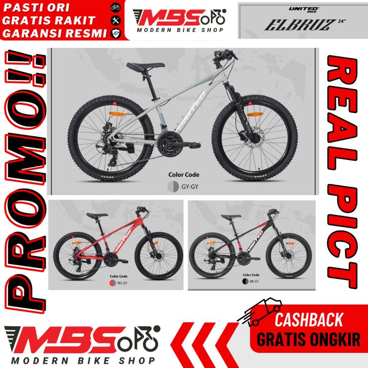 UNITED ELBRUZ 24 inch MTB STEEL Sepeda Gunung Dewasa 24 SPEED MEKANIK