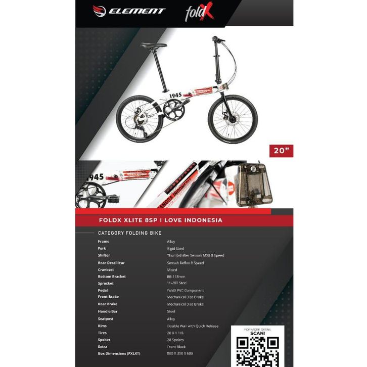 ELEMENT FOLDX XLITE KEMERDEKAAN SEPEDA LIPAT 20 inch FOLDING BIKE ANAK Dewasa ALLOY 8 SPEED
