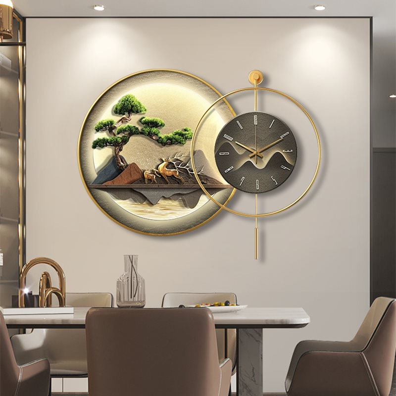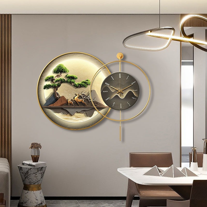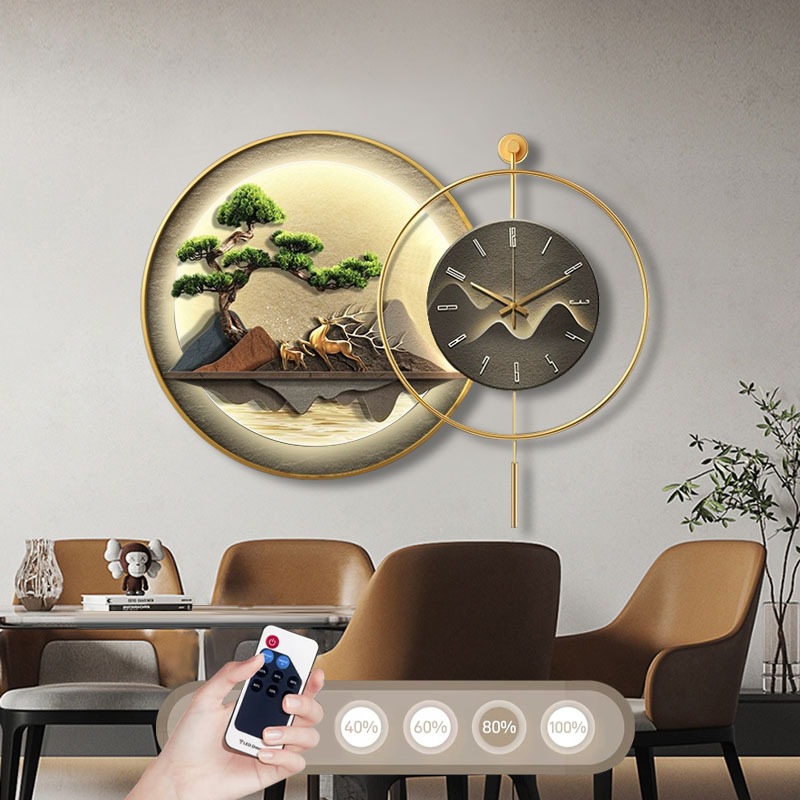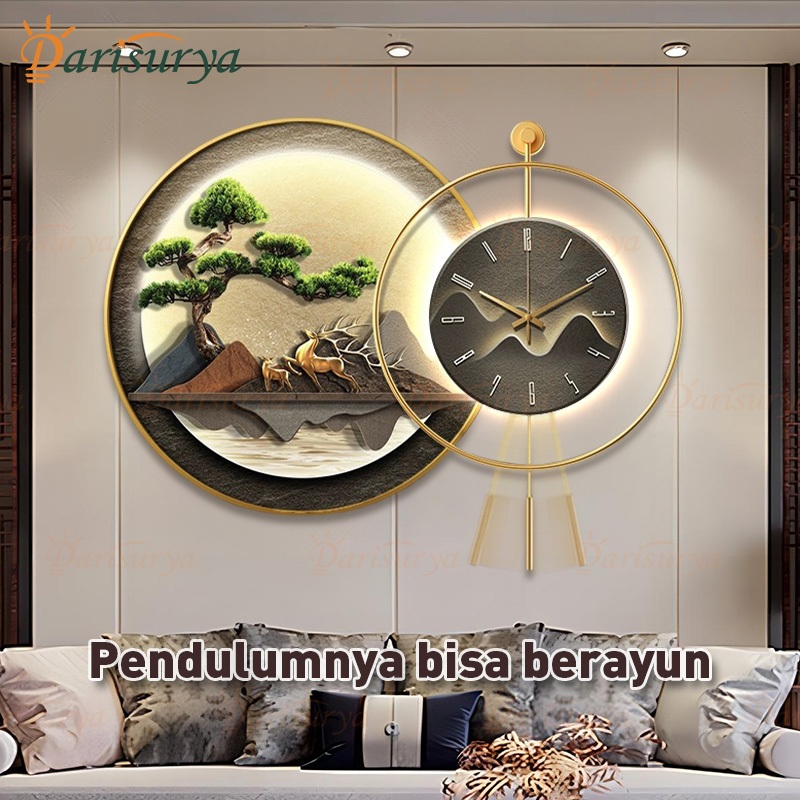 Jam Dinding Ruang Tamu Motif Rusa Gold Mewah Nordic Modern Remote Control Lampu Hiasan dinding AMG