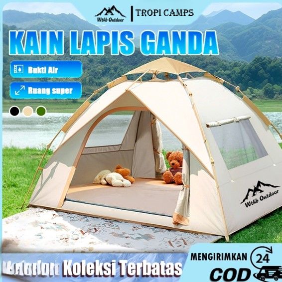 Tenda Camping Double Layer Tenda Otomatis Anti Hujan untuk 4 Musim Tenda Kemah Tahan Air dan Cepat