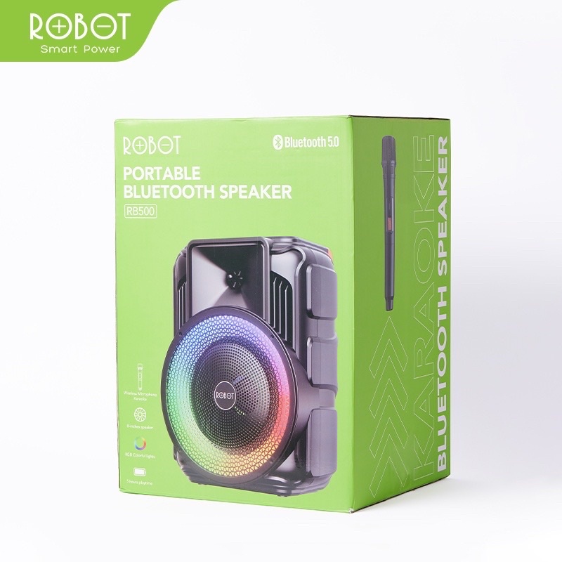 ROBOT RB500 Speaker Bluetooth Karaoke 5.0 Audio Wireless Super Bass Portable LED - Garansi Original Resmi