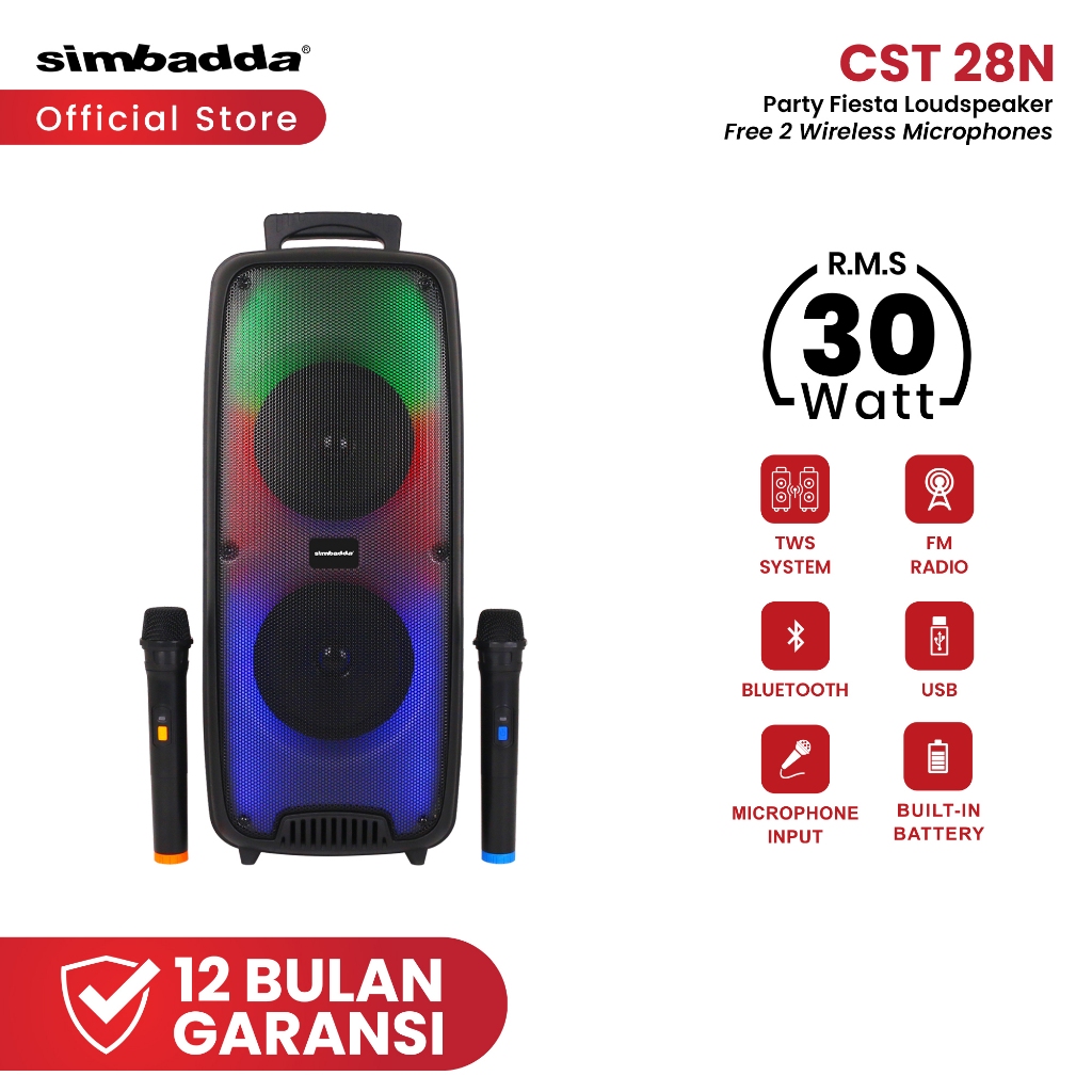 Simbadda CST 28N - Speaker Bluetooth Portable Super Bass 30W + 2 Mic Wireless
