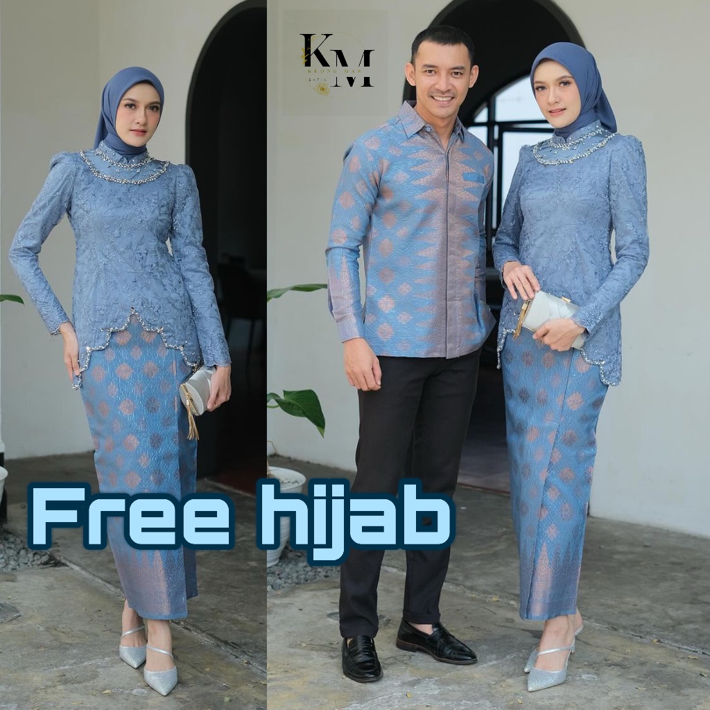 (FREE HIJAB) SET COUPLE KEBAYA SONGKET MODERN SERA SERIES FULL PAYET WISUDA LAMARAN TERBARU 2024