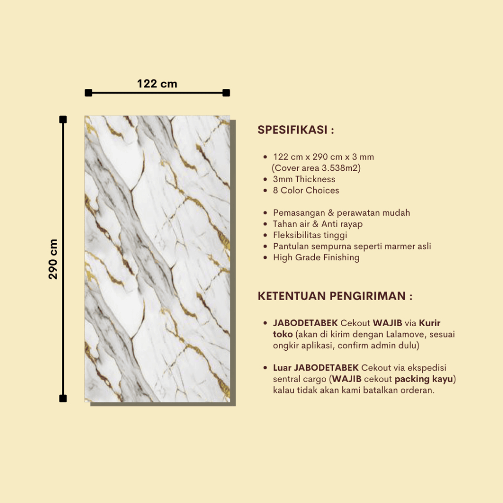 FERGIO UV Marble 2D Wall Panel Stone - FM3303 CALCATTA G0.LDGIL | Tebal 3mm, Ukuran 122cm x 290cm | Wallboard PVC Marmer