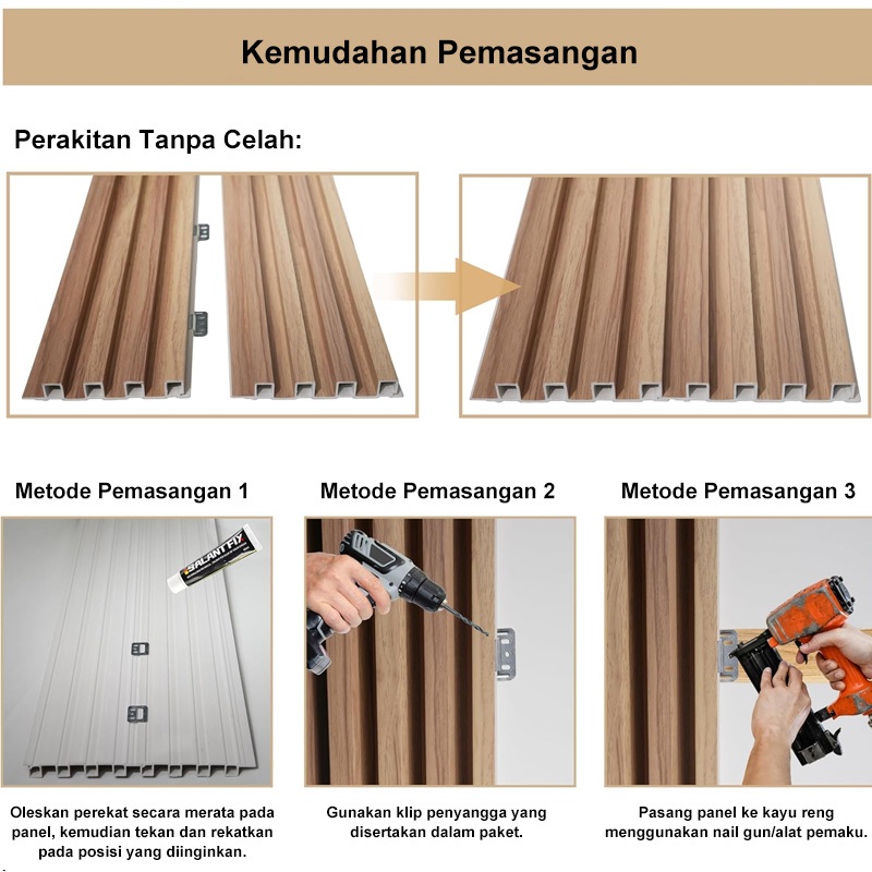 MJ-10PCS Papan Kayu Panel PVC / Panel Dinding PVC / Panel Dinding WPC Kayu Solid 162.2cm Panel Dinding Dekoratif Tahan