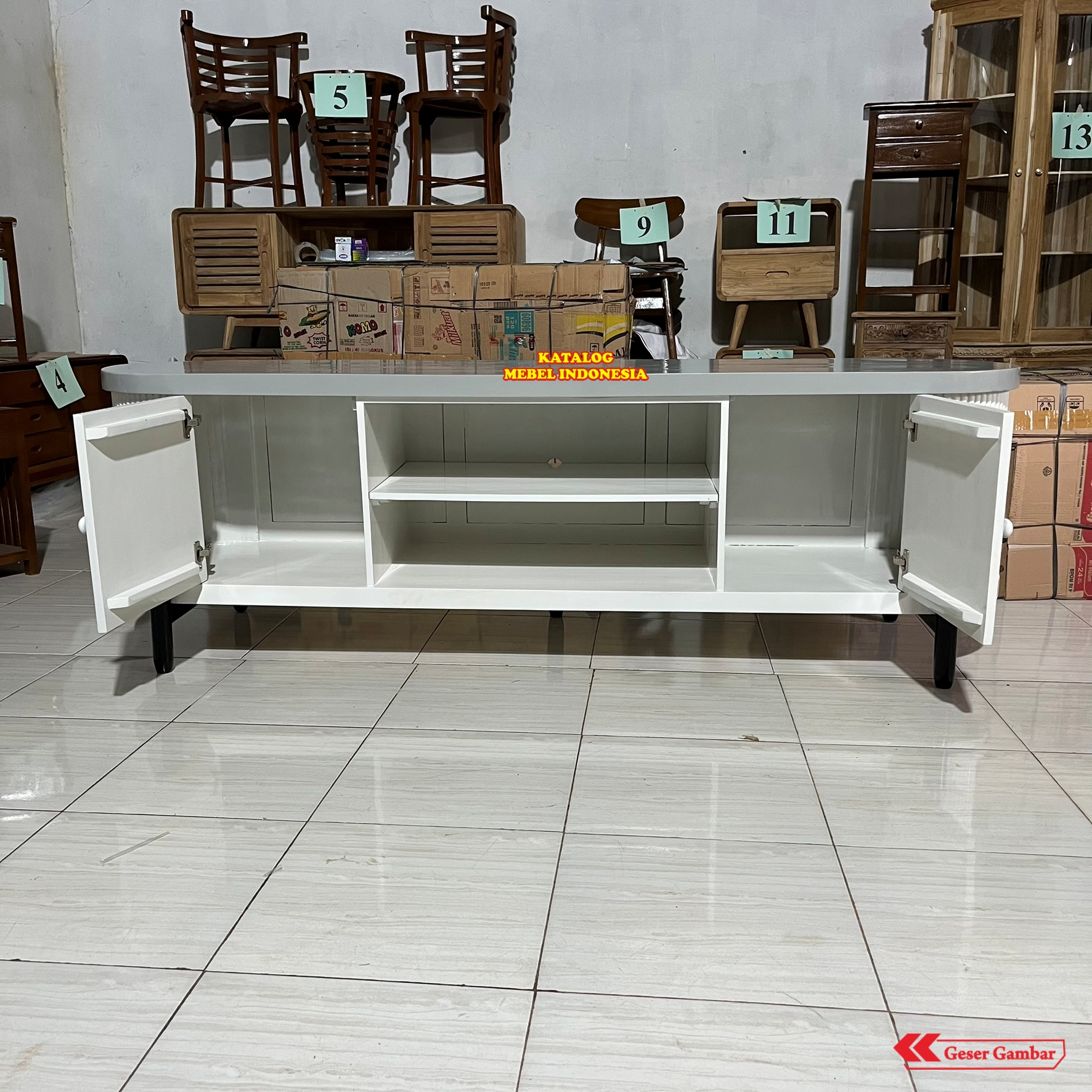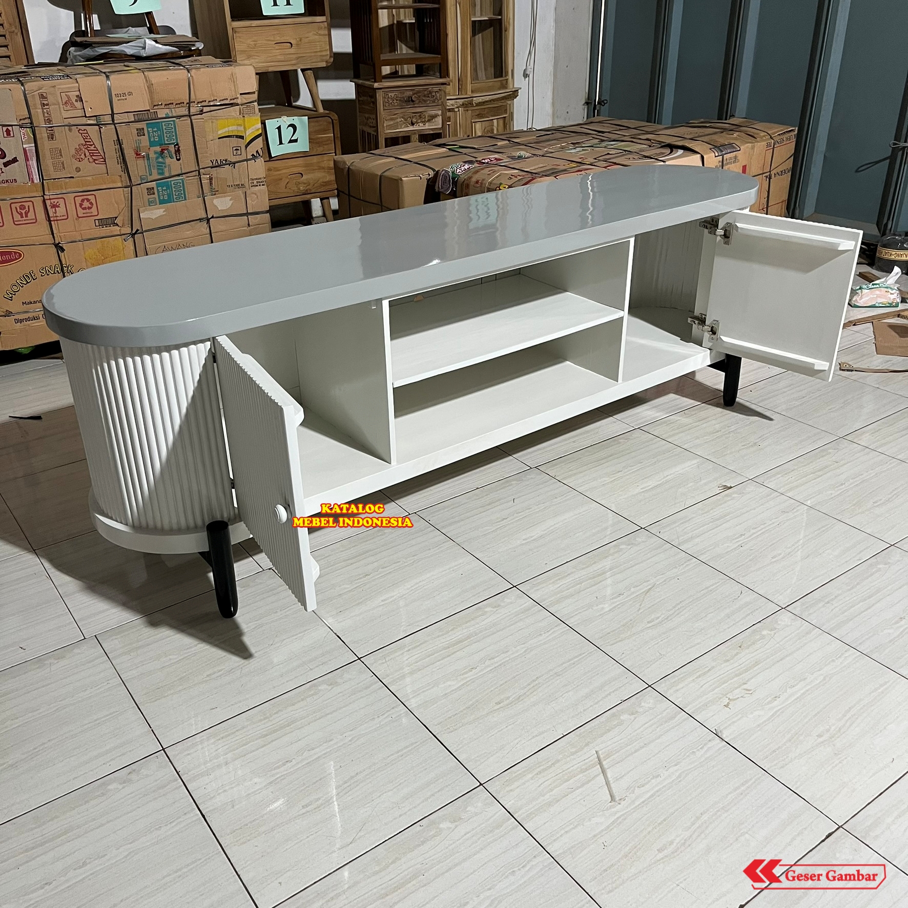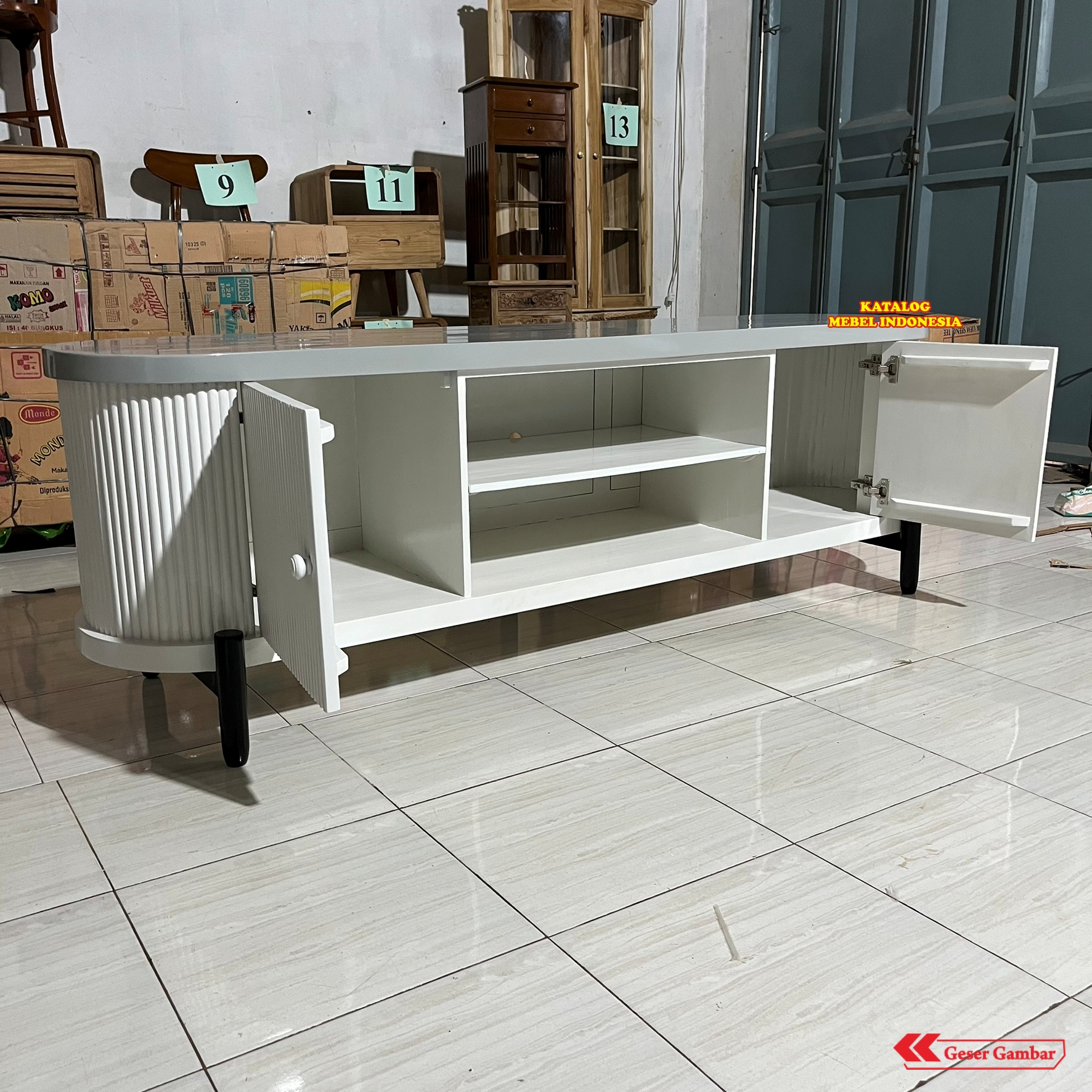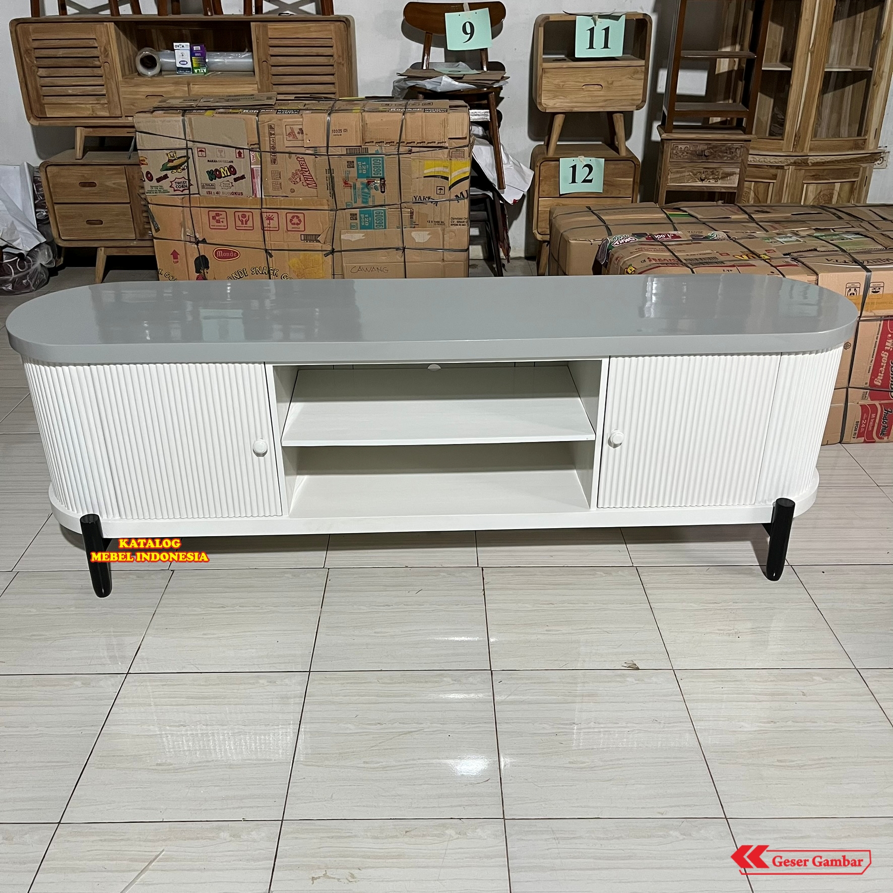 MEJA TV MINIMALIS PUTIH DUCO MOTIF SALUR UNIK - RAK TV MINIMALIS BERGARIS KAYU JATI BERKUALITAS
