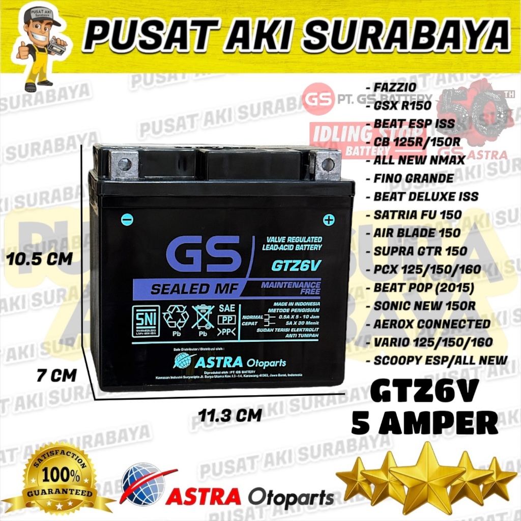 GARANSI RESMI GS ASTRA GTZ6V ORIGINAL ACCU KERING MF MOTOR NMAX 155 VARIO 125/150 SATRIA FU CBR CRF SCOOPY-FI MTZ6S YTZ6V GTZ7S