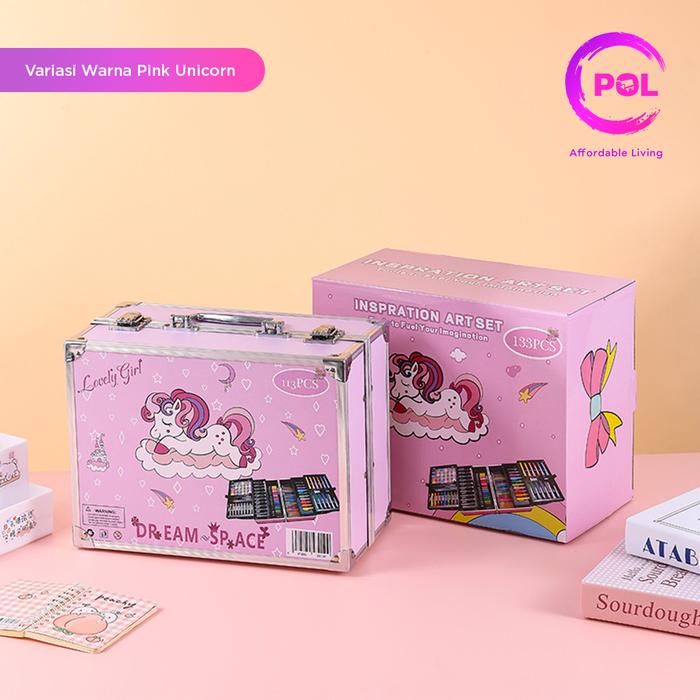 Crayon Art Set 128pcs & 133pcs Koper Alumunium Besi | Krayon Pensil Warna - 128 pcs, Biru