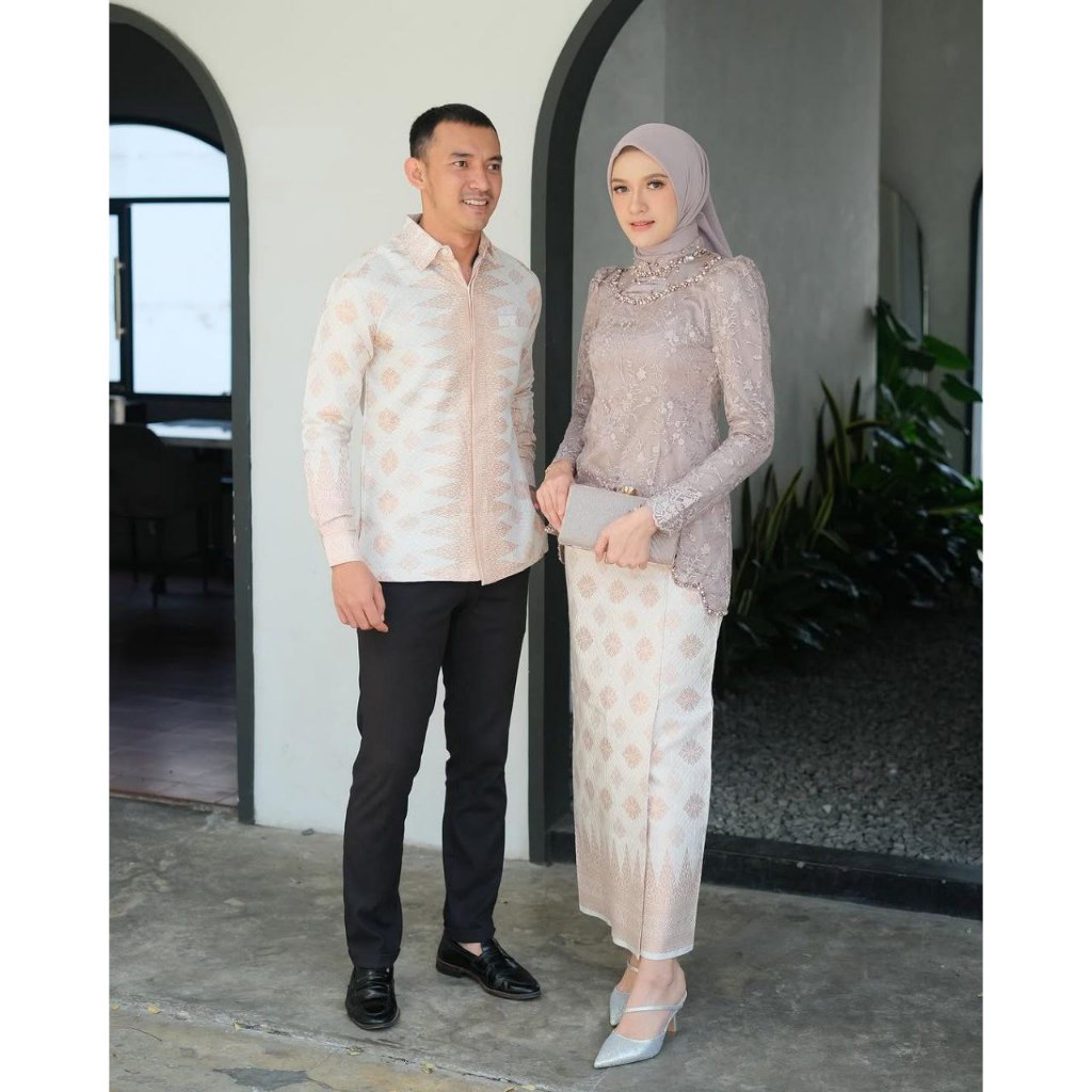 (FREE HIJAB) SET COUPLE KEBAYA SONGKET MODERN SERA SERIES FULL PAYET WISUDA LAMARAN TERBARU 2024