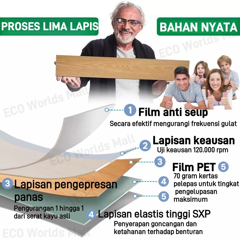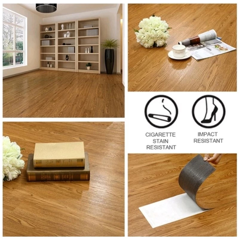 Vinyl lantai parket pvc lantai vinyl motif kayu dengan Lem stiker lantai semen kasar anti air