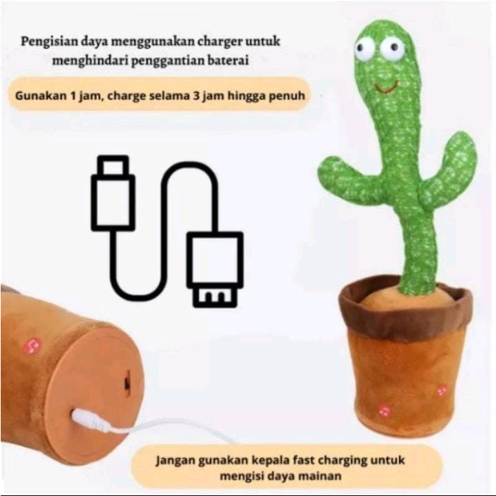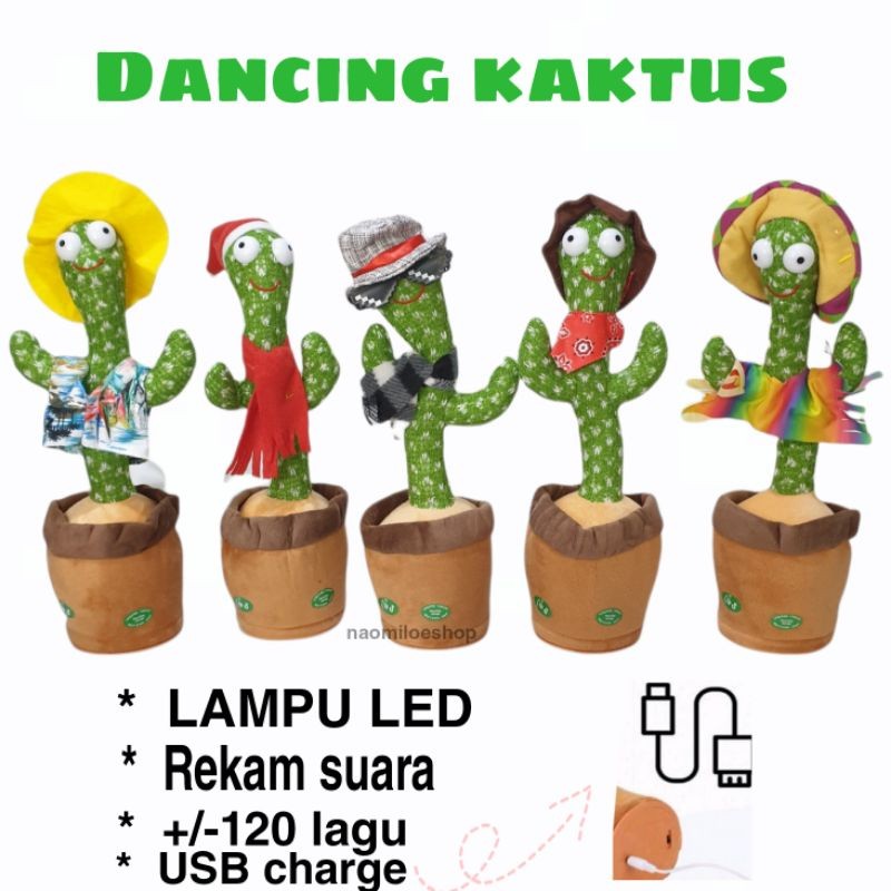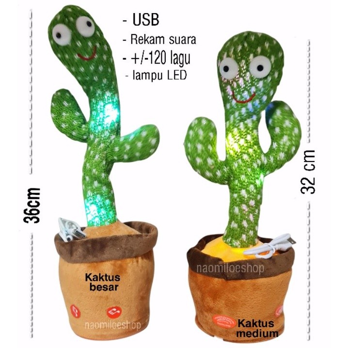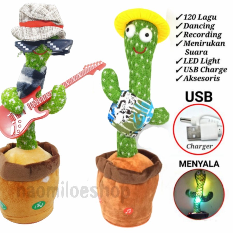 Mainan Boneka Kaktus Elektrik Lampu Led Mainan Kaktus Dancing Cactus Toy Joget