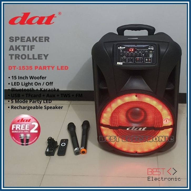 SPEAKER AKTIF TROLLEY 15 INCH DAT DT 1535 DT1535 DT-1535 PARTY LED BLUETOOTH SPEAKER PORTABLE