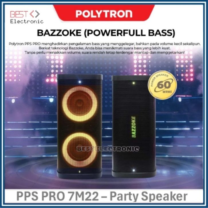 SPEAKER AKTIF POLYTRON PPS PRO7M22 PPS PRO 7M22 PPSPRO7M22 BLUETOOTH PARTY MAX BAZZOKE PORTABLE PROFESSIONAL
