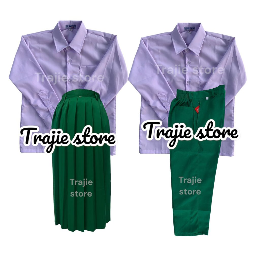 Setelan Seragam Sekolah SD/MI Putih Hijau Laki-Laki Perempuan Baju Celana Rok Rempel Lengan Panjang