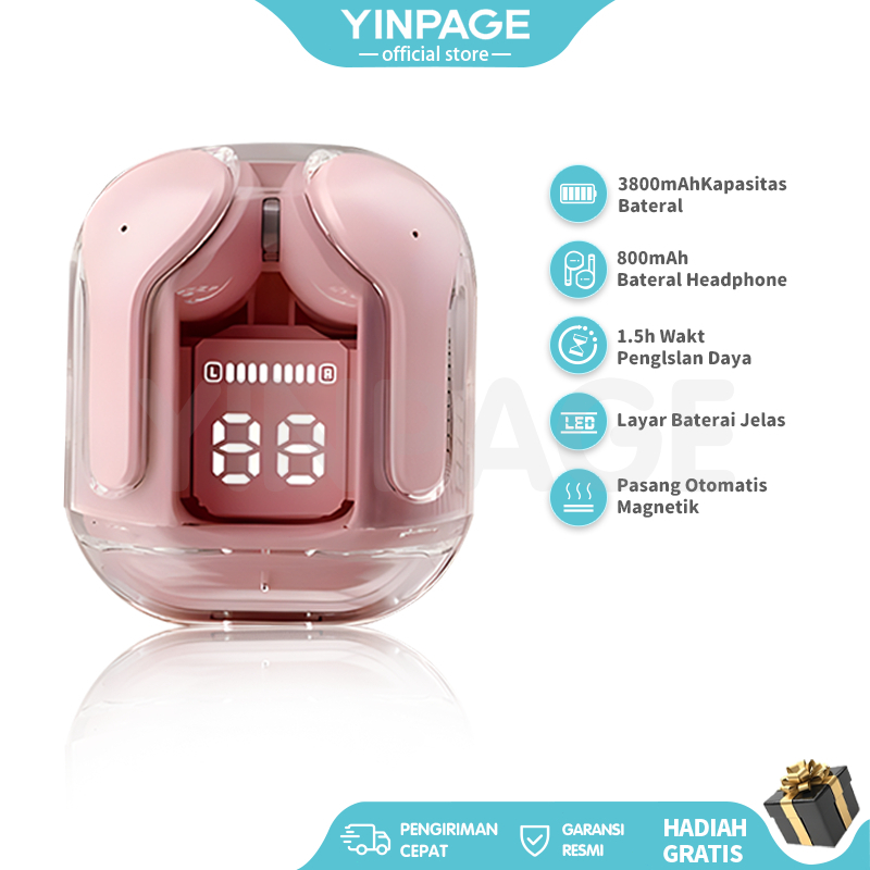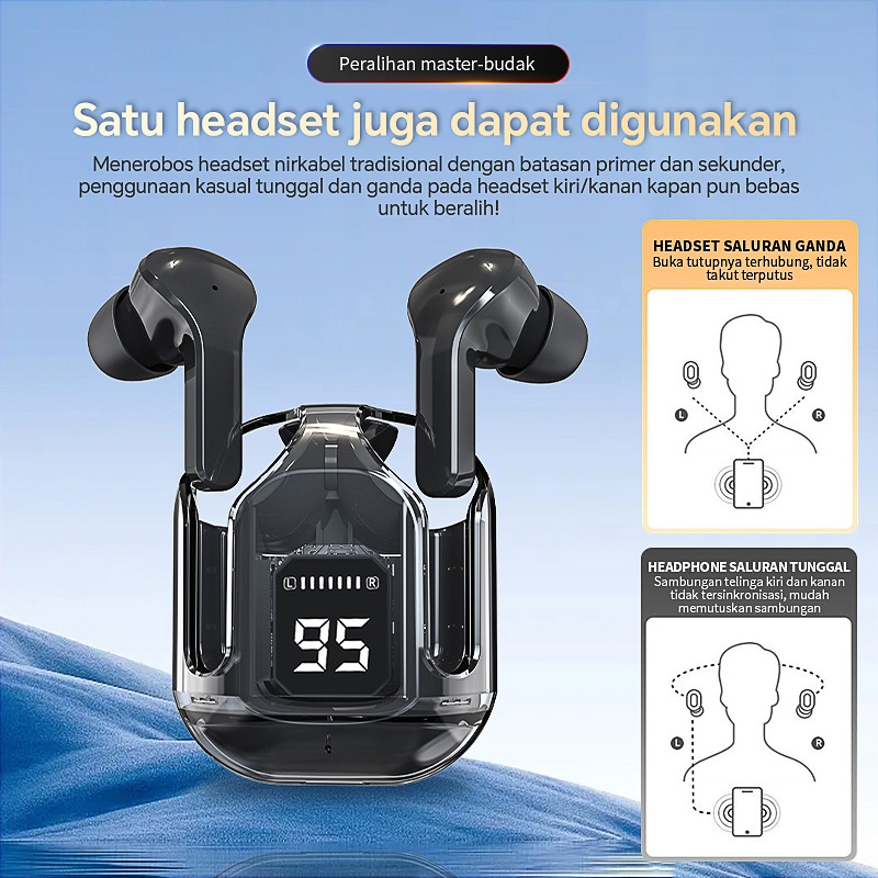 Headset Bluetooth TWS Blutut 5.3 Hedset tanpa kabeldengan Mikrofon Setereo Hedset Setereo WarnaTransparan LED