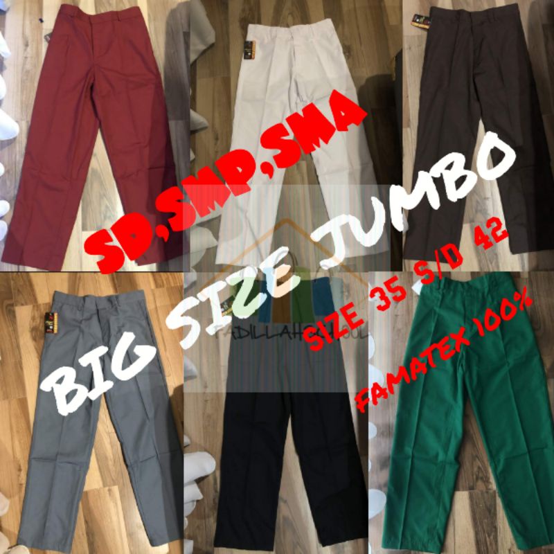 Seragam Sekolah Celana JUMBO SD SMP SMA Panjang Karet Merah Abu Biru Hijau Putih Hitam Pramuka Coklat