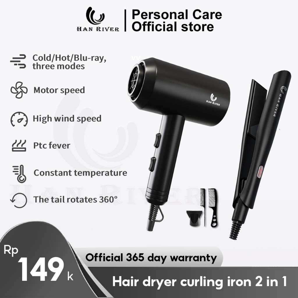 HAN RIVER Paket Hair Dryer HRHD01BK Catokan HRJFB03BK