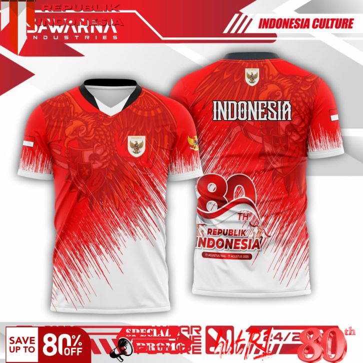 Jersey Kaos Panitia HUT RI KE 80 Indonesia V5 Kemerdekaan 17 Agustus Tahun 2025 Full Print V5