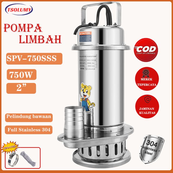 Tsolumy Pompa Celup Air Kotor SPV-750SSS Stainless Submersible 2Inch Pompa Air Laut / Pompa Tambak