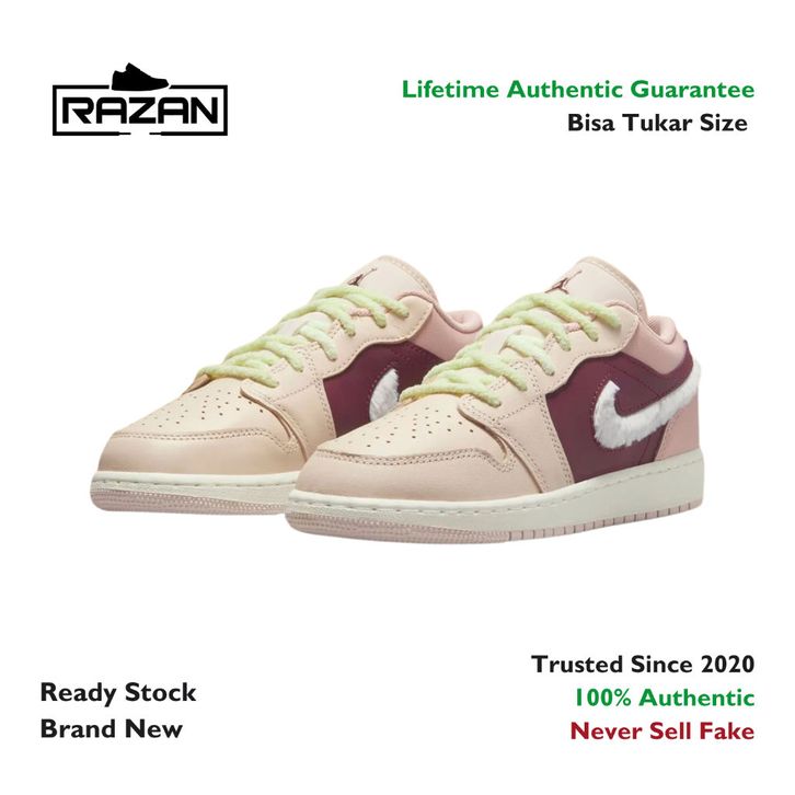 Sepatu Sneakers Air Jordan 1 Low Fur Swoosh (GS) Authentic Original
