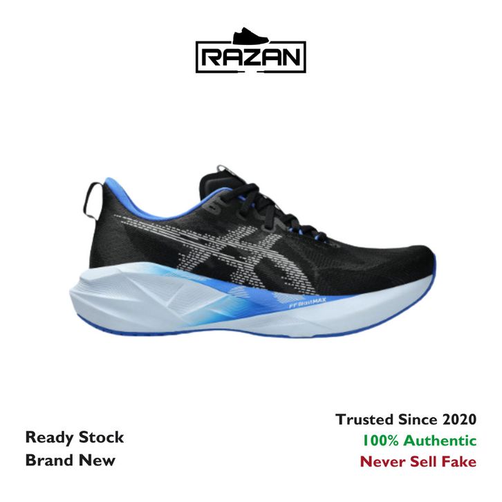 Sepatu Sneakers Asics Novablast 5 Black White Blue Authentic Original