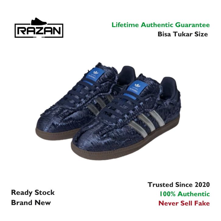 Sepatu Sneakers Adidas Samba OG Caroline Hu Satin Dark Blue Silver (W) Authentic Original