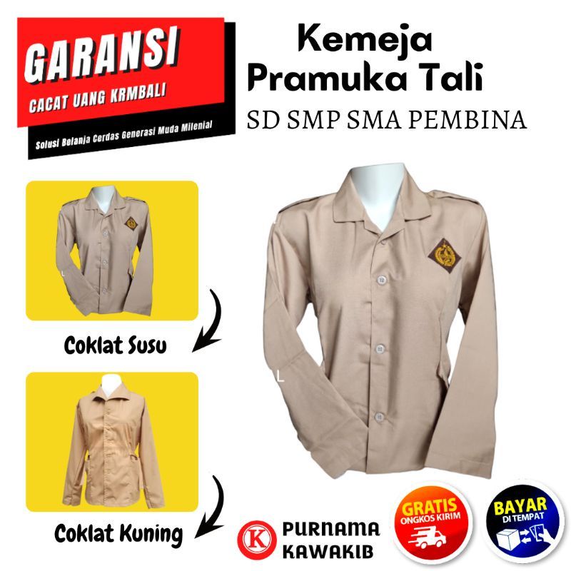 Baju Seragam Sekolah Pramuka SD SMP SMA Kemeja Pramuka Pembina / Tali Samping Lengan Panjang Coklat Susu dan Coklat Terang untuk Putri Jumbo