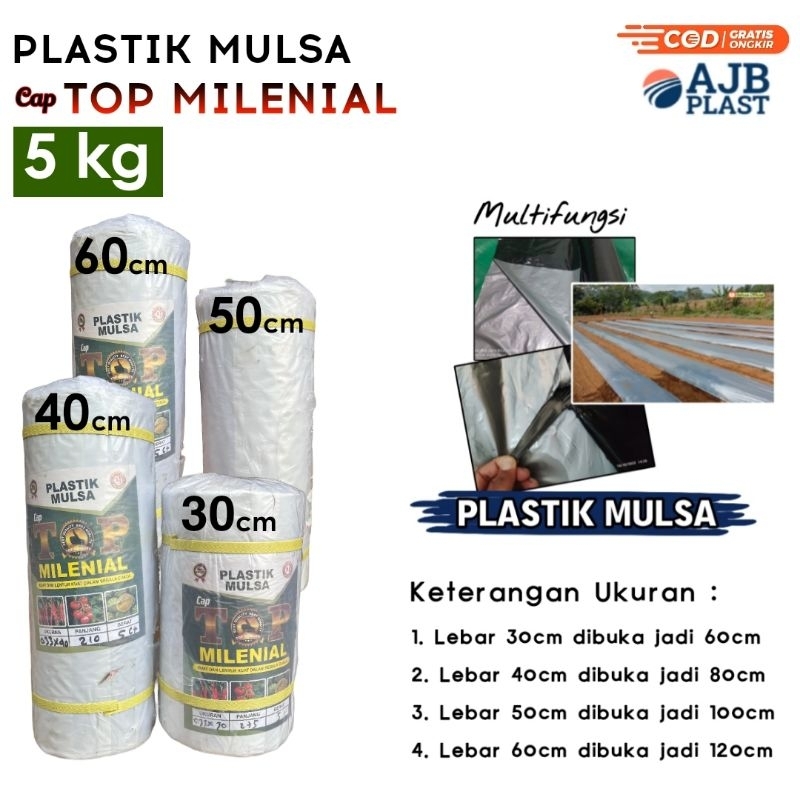 PLASTIK MULSA PLASTIK PERTANIAN HITAM PERAK 1ROLL BERAT 5 KG 60CM 80CM 100CM 120CM