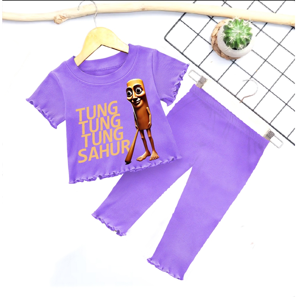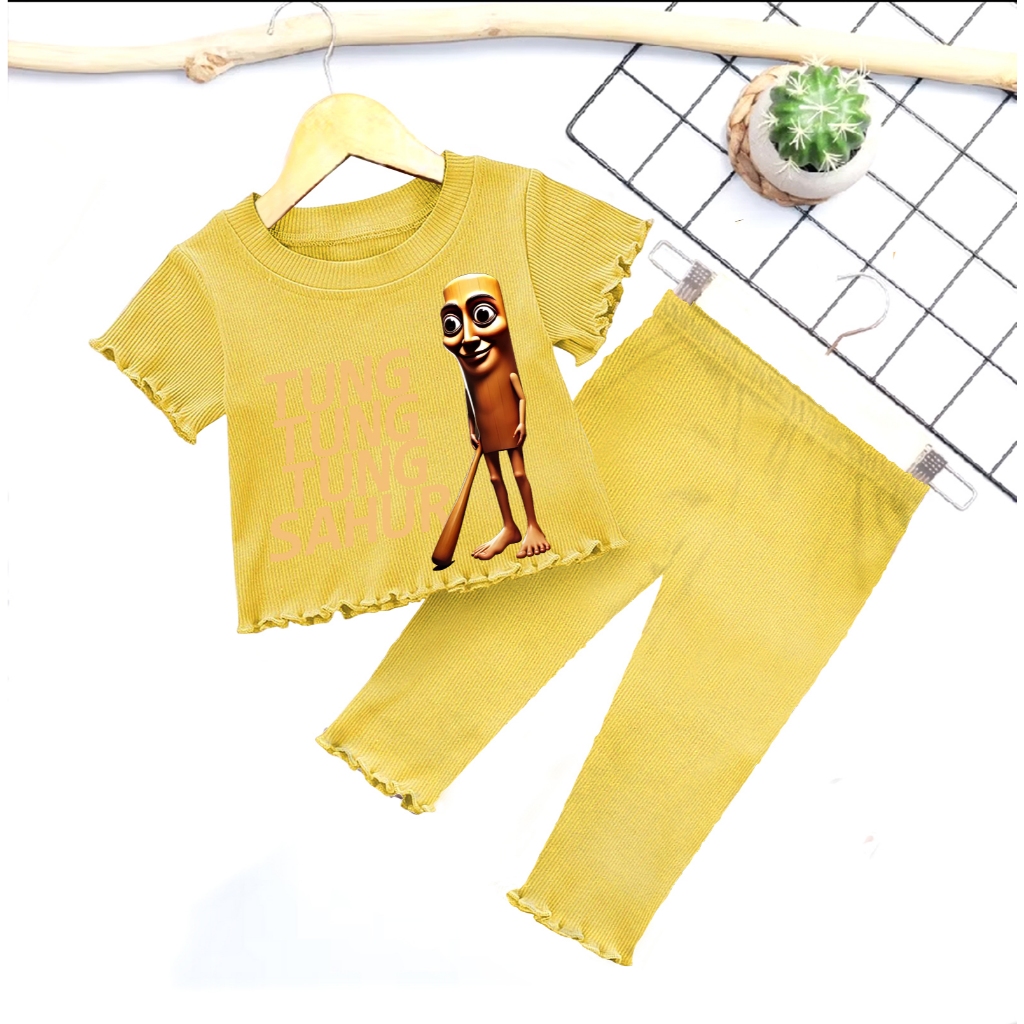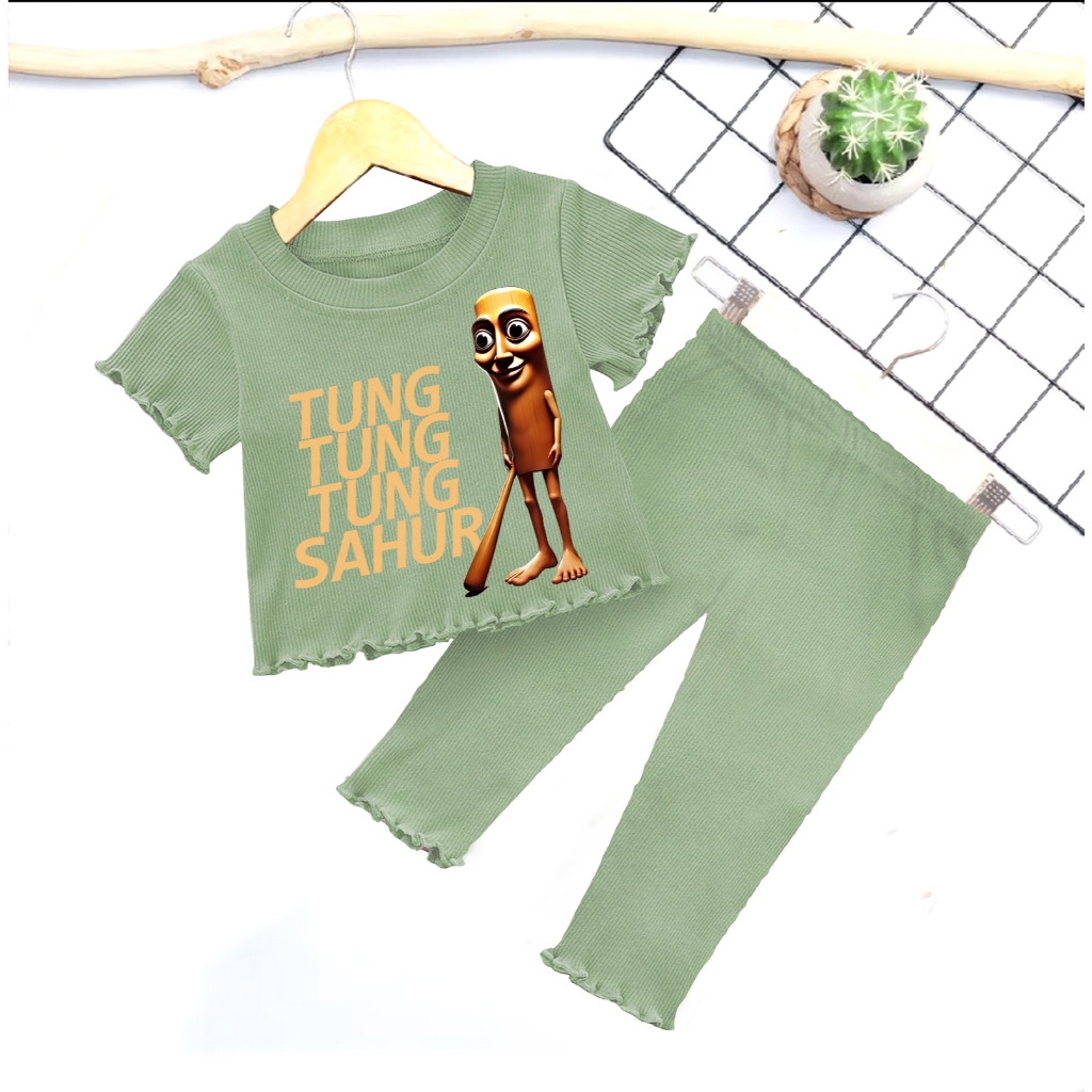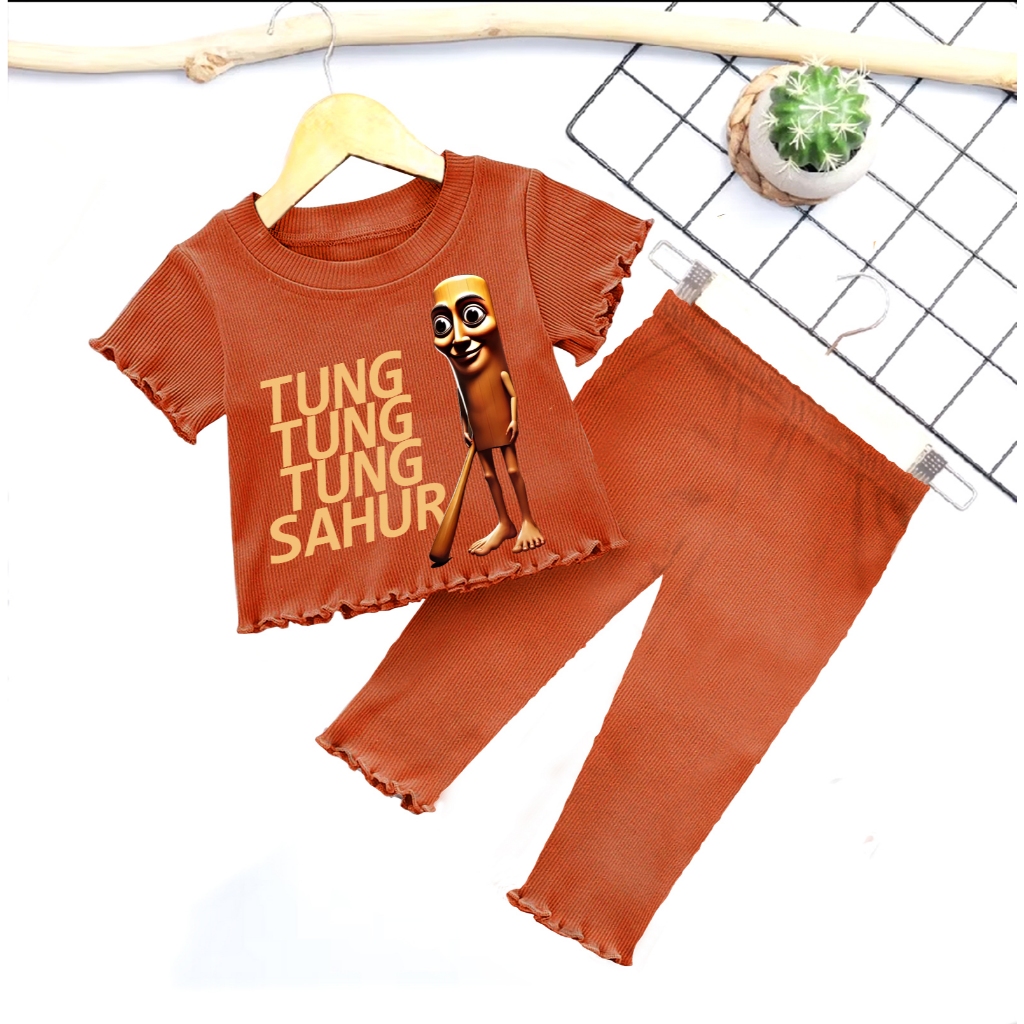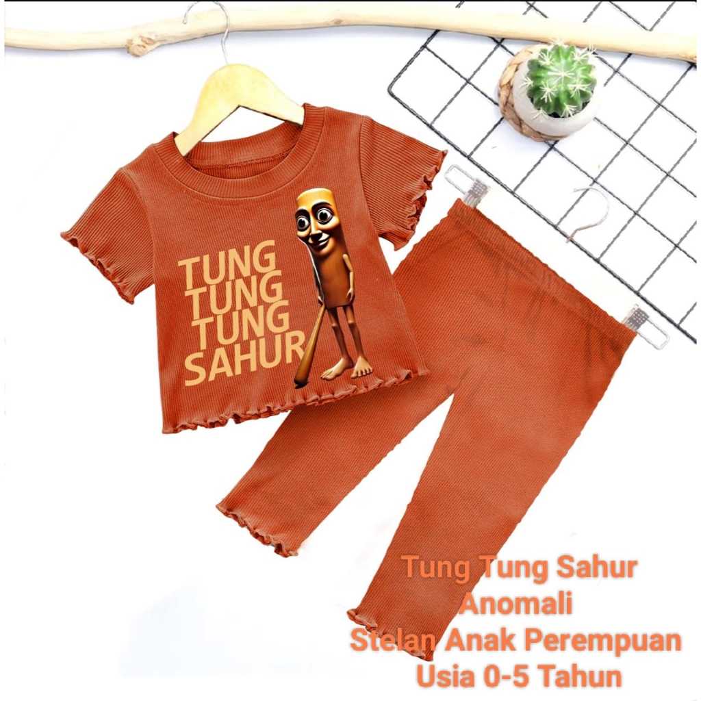 Baju Setelan Anak Perempuan Tung Tung Tung Sahur Anomali Panjang Usia 0-5 Tahun