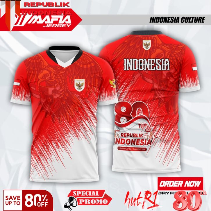 JERSEY KAOS HUT RI KAOS 17 AGUSTUS KEMERDEKAAN V5 TERBARU 2025 KAOS MERAH PUTIH V5 FULLPRINT