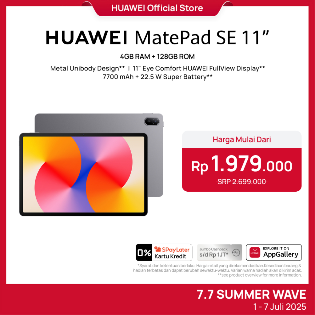 [READY STOCK] HUAWEI MatePad SE 11" Tablet [4+128GB] | FHD+ Eye Comfort Display | 7700mAh | Metal Unibody