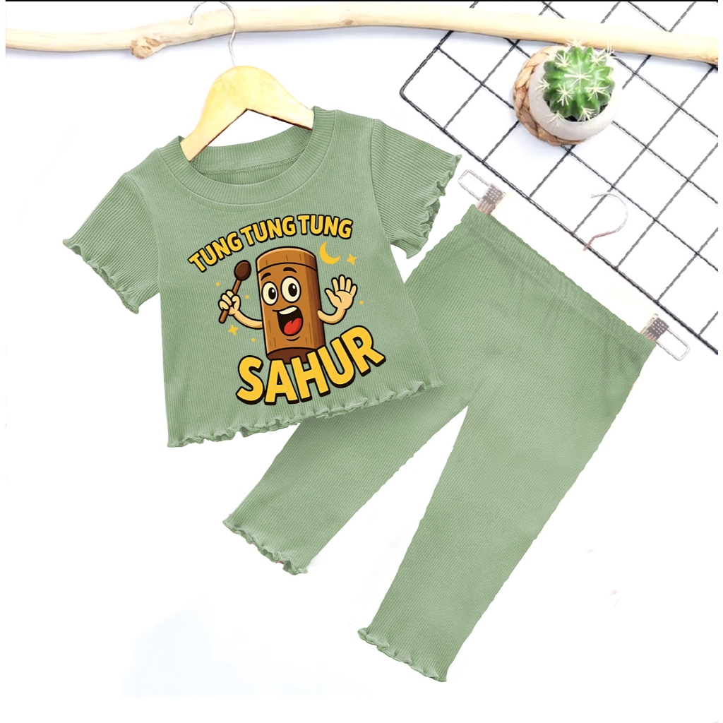Setelan Baju Anak Tung Tung Sahur Anomali Perempuan Panjang Usia 1 2 3 4 5 Tahun