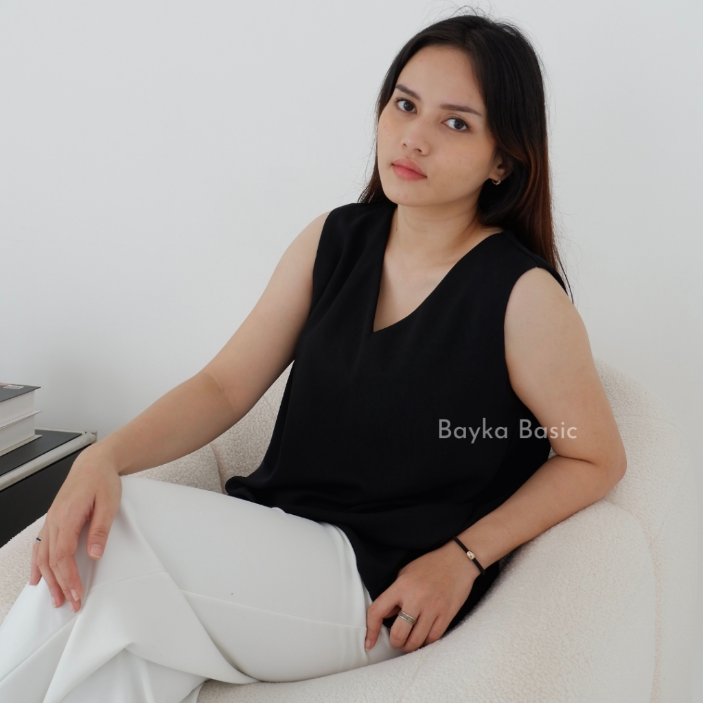 BAYKA - INNER V NECK TANPA LENGAN SLEEVELESS KOREAN STYLE JUMBO BIGSIZE KAIN TANKTOP MANSET BLOUSE DALEMAN KAMISOL BASIC ATASAN POLOS WANITA DALAMAN KEBAYA SMALL MEDIUM