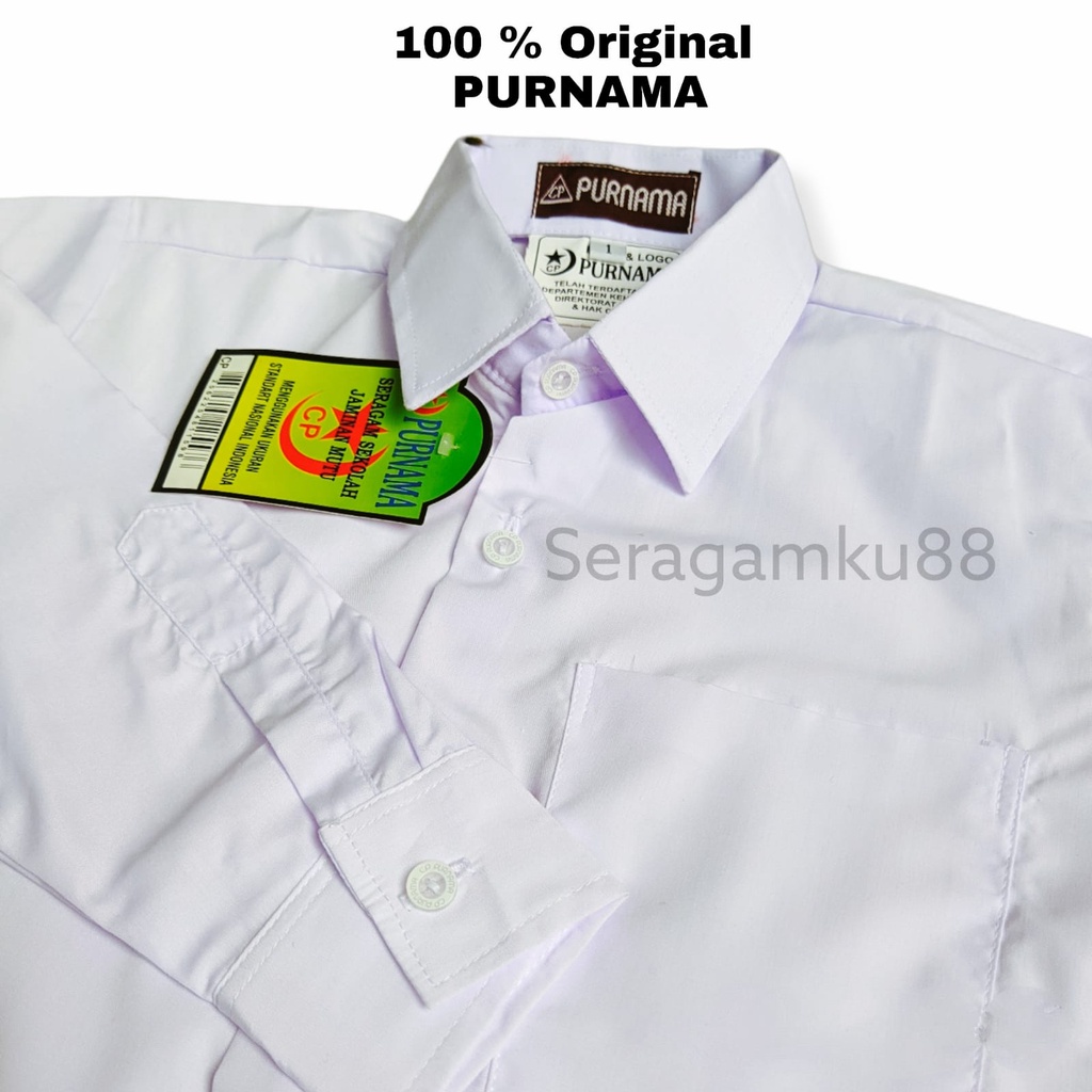 Seragam sekolah Merek PURNAMA ORIGINAL Kemeja putih panjang / SERAGAM SD SMP SMA OSPEK KULIAH KERJA / Kemeja Kantor Kemeja Ospek Kemeja Pelatihan Seragam