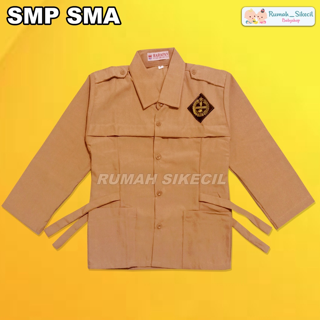 Baju Seragam Sekolah Putih Coklat Pramuka Panjang SMP MTS SMK SMA Kemeja Putih Lengan Panjang SMP SMA Anak Laki Laki Perempuan Unisex