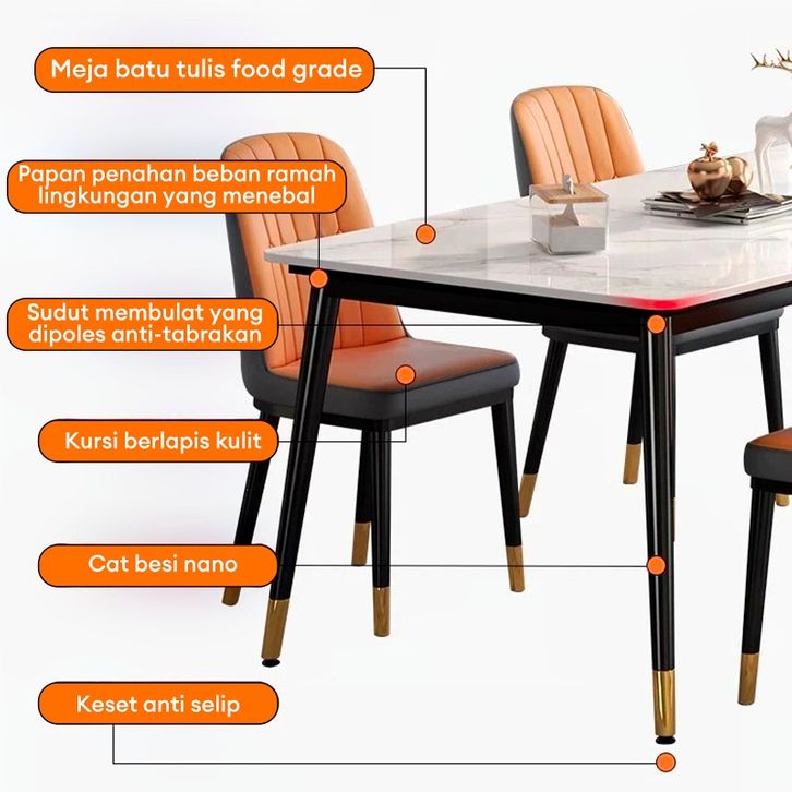 Meja Makan Minimalis Tekstur Marmer Trestle Kuat Dan Tahan Air