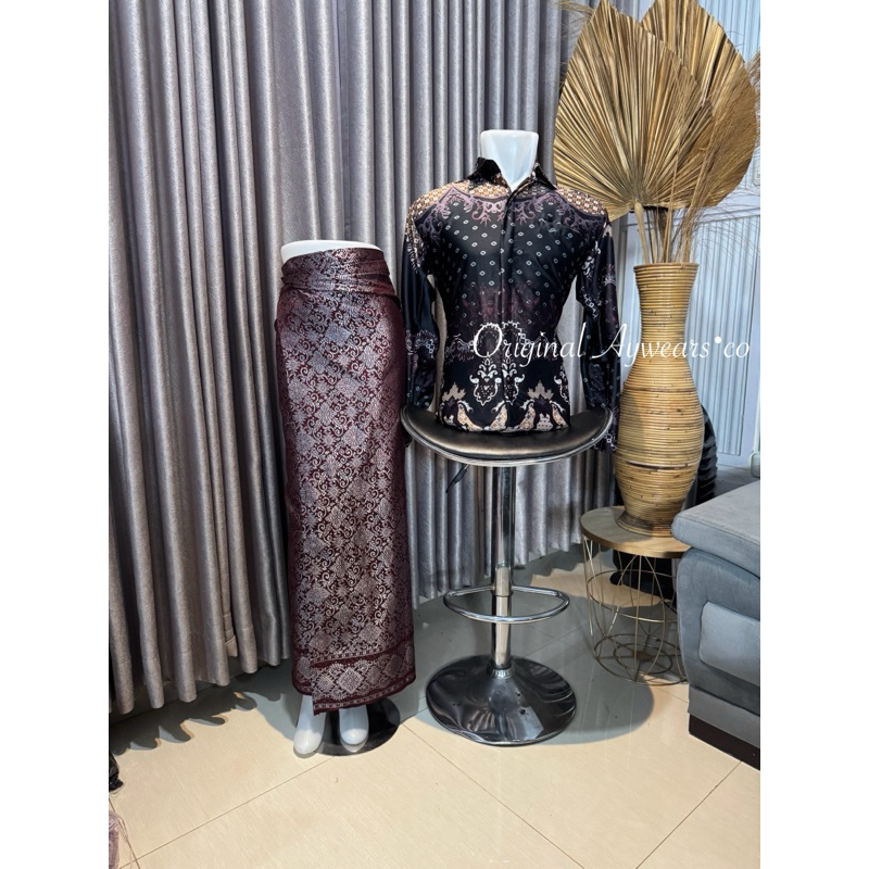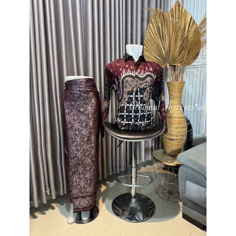 AYWEARS• SET COUPLE ROK SONGKET LILIT BURGUNDY DAN KEMEJA BATIK LENGAN PANJANG