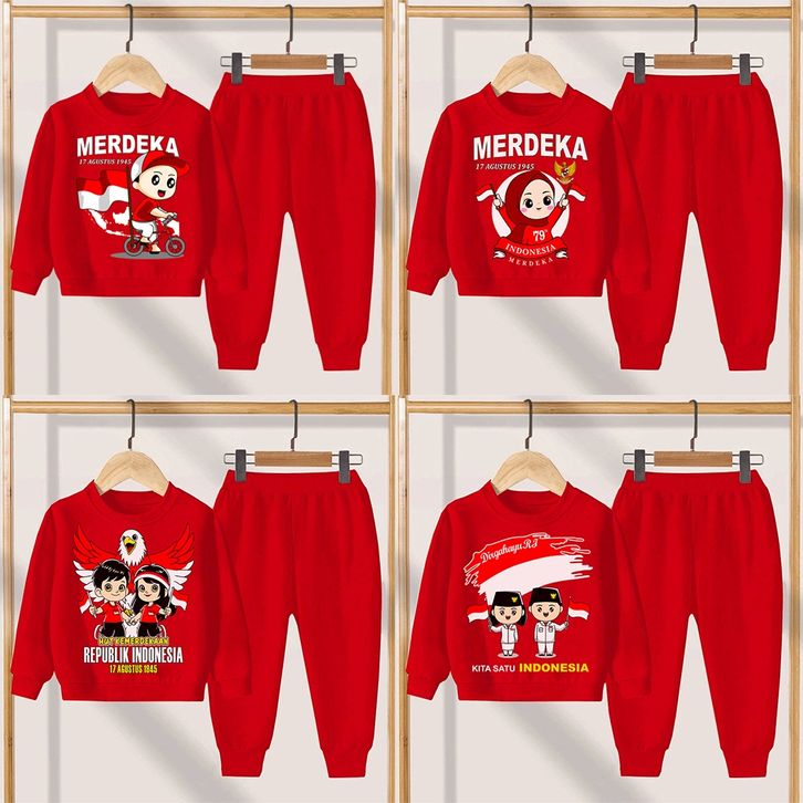YMF - SETELAN BAJU ANAK 17 AGUSTUS 1945 MERDEKA / KEMERDEKAAN HUT RI / MERAH PUTIH / USIA 3-12 TAHUN / UNISEX