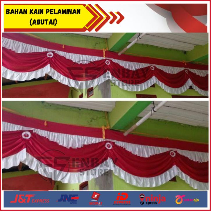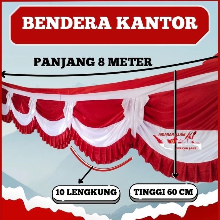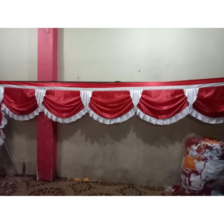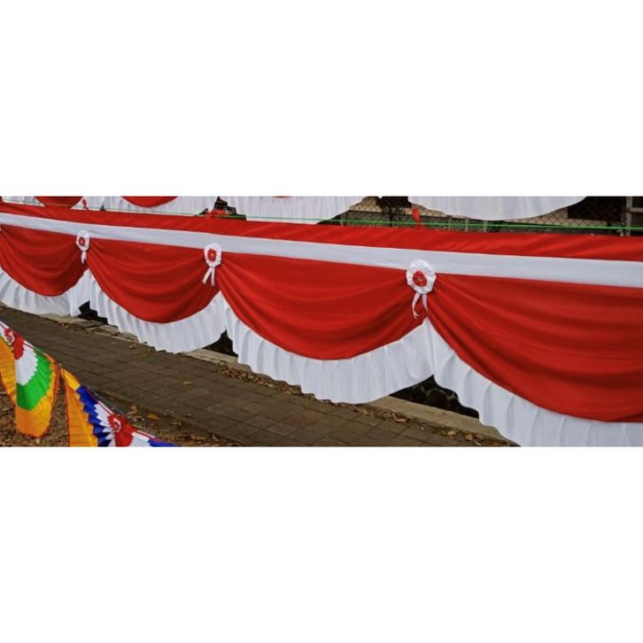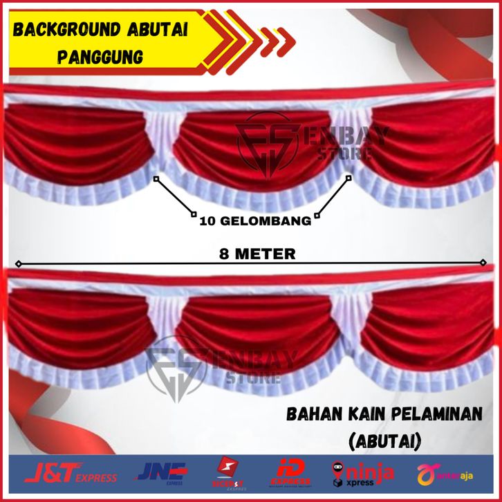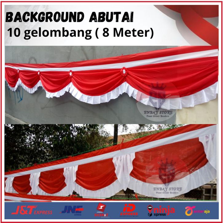 BENDERA BACKGROUND MERAH PUTIH ABUTAI PANGGUNG 10 GELOMBANG (8/4 Meter)