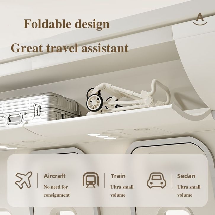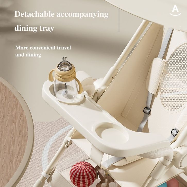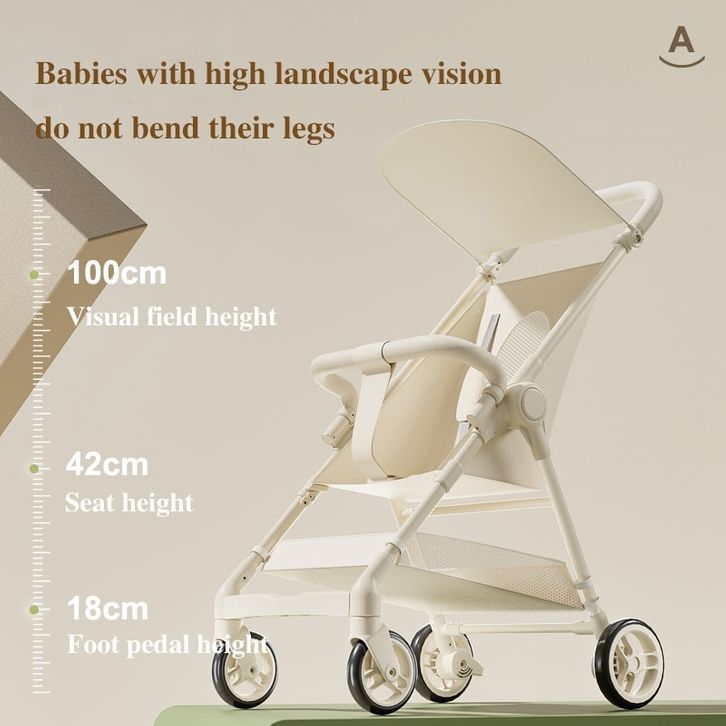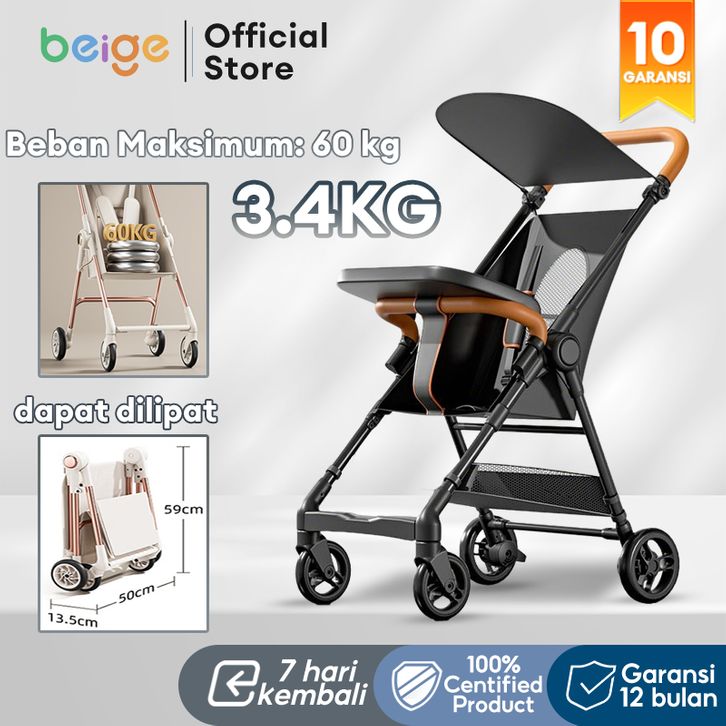 Kereta Dorong Bayi BEIGE Stroller Bayi 1-Tombol Lipat Portabel Travel Kapasitas 60kg Ringkas