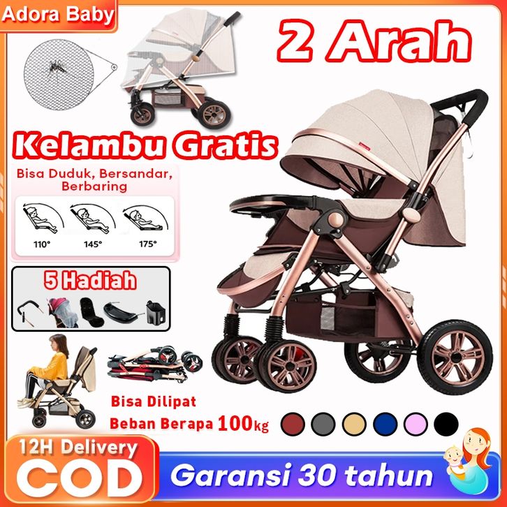 Kereta Dorong Bayi Garansi 30 Tahun BEIGE Stroller Bayi Lipat Travelling stroller baby 2 Arah Beban Berapa 100kg
