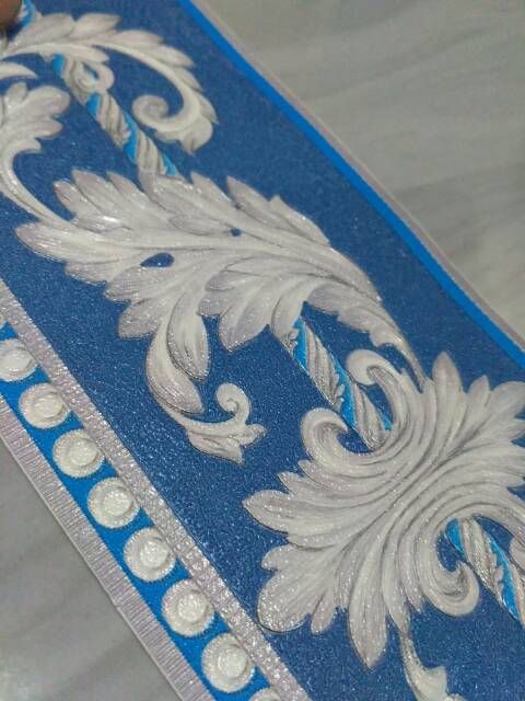 Wallpaper list Border premium YA11101 . Ukuran 10 cm x 5 meter motif batik biru, serat tekstur timbul terbaru dekorasi