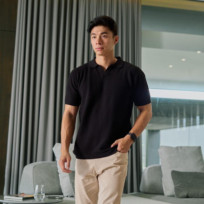 Kale Richard / Polo Shirt rajut premium berbahan dasar cotton wool - RICHARD BLACK, S