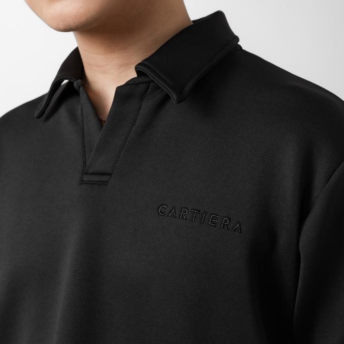 Loco Polo Cartiera Scuba 280 GSM Boxy Polo Shirt Pria / Kaos Kerah Lengan Pendek - Jet Black, S