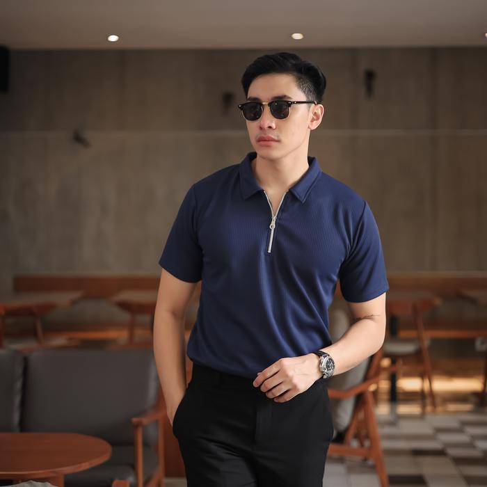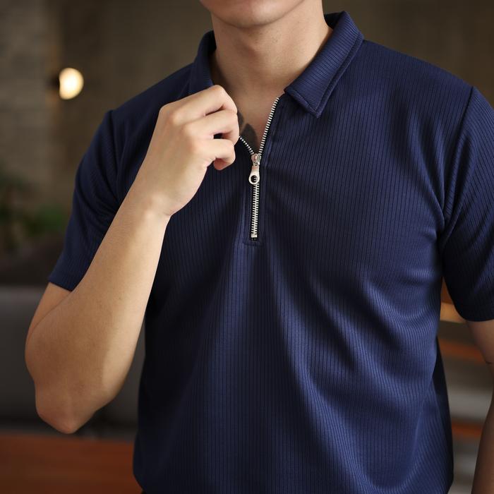 CREDO Polo Shirt Pria Kerah Knit Premium Zipper ORIGINAL CRD Slim Fit Kaos Basic Pendek - Navy ZIPPER, Size M