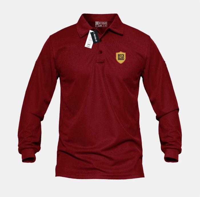 Reckblud T-shirt Polo Lengan Panjang Icon Perisai Text Gold Unisex - Hitam, M