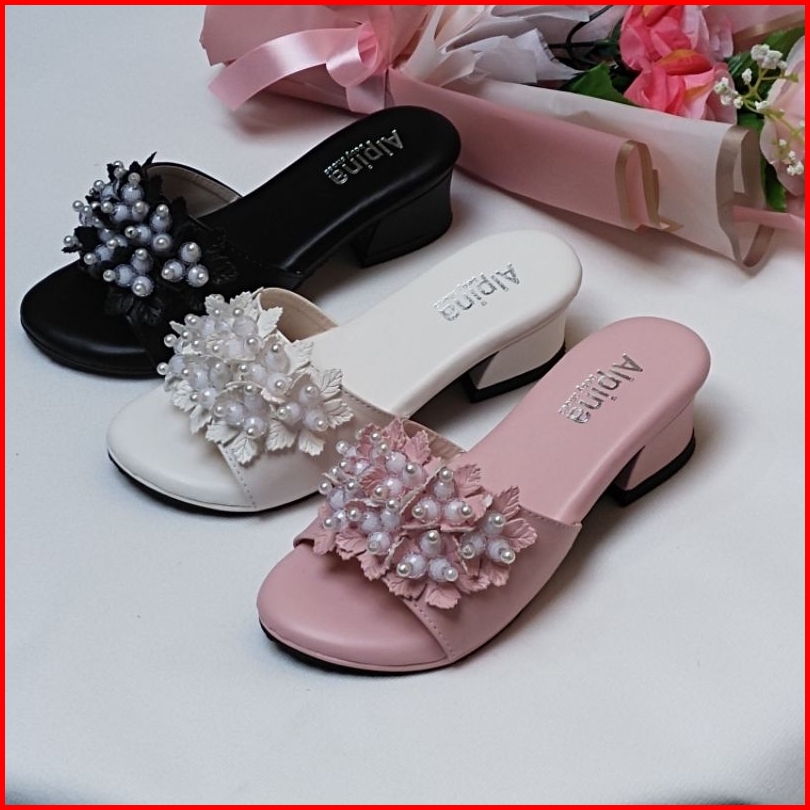 Sendal Pesta Anak Perempuan Empuk Hak Tahu Tinggi Hak 3 Cm Kokop Mote Mutiara