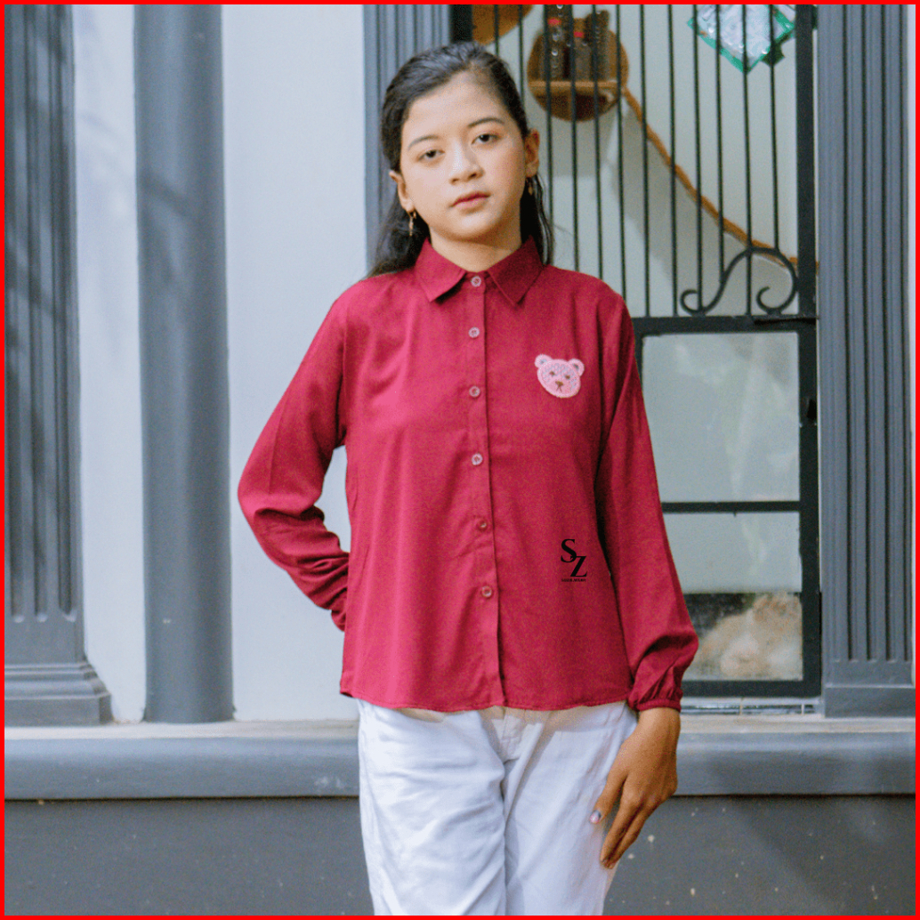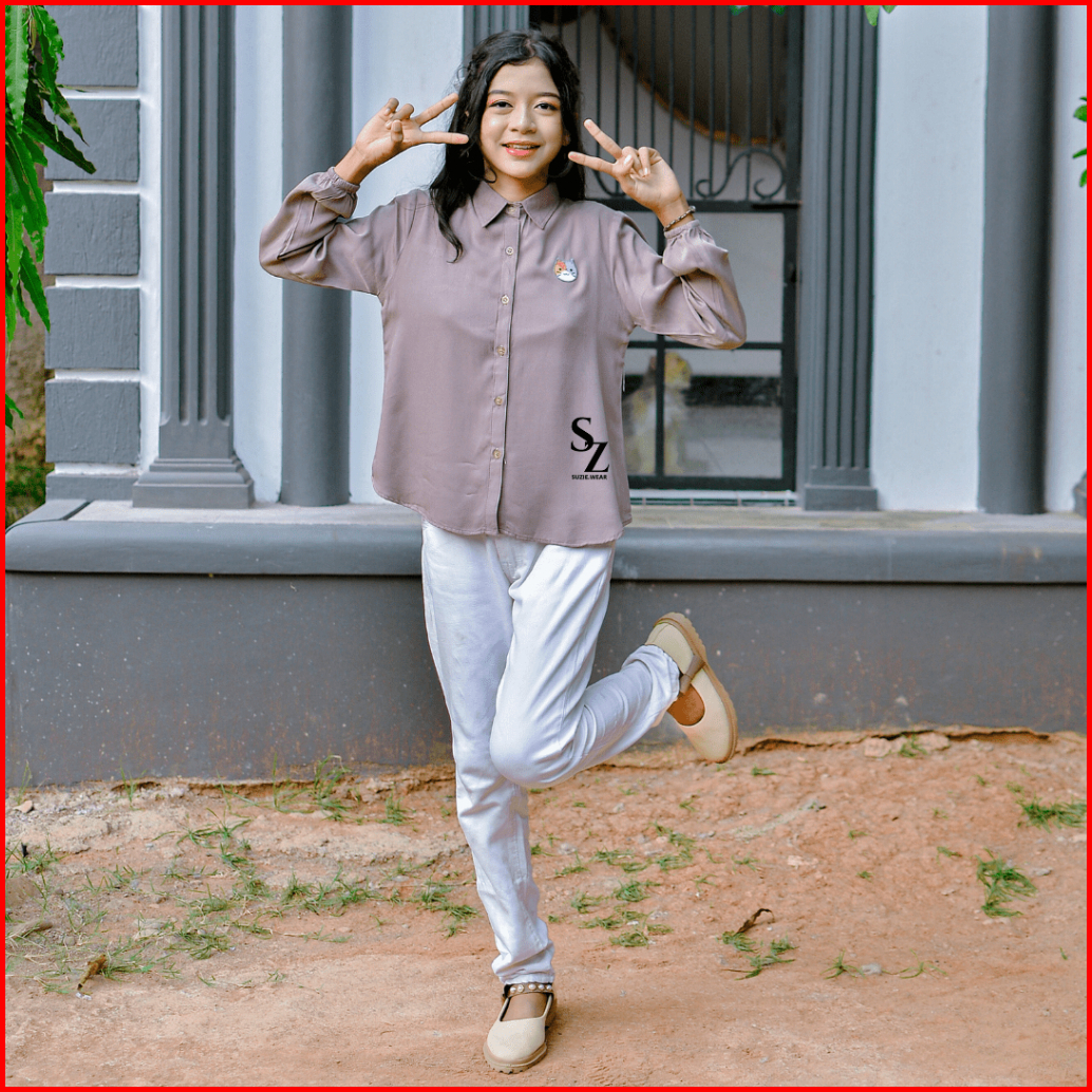 Freya Shirt - Kemeja Anak Perempuan Tanggung Max 13th Basic Rayon Twill Oversize - Kemeja Polos Lengan Panjang Anak Rayo
