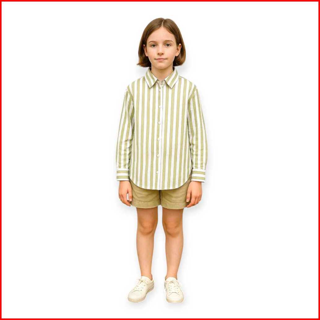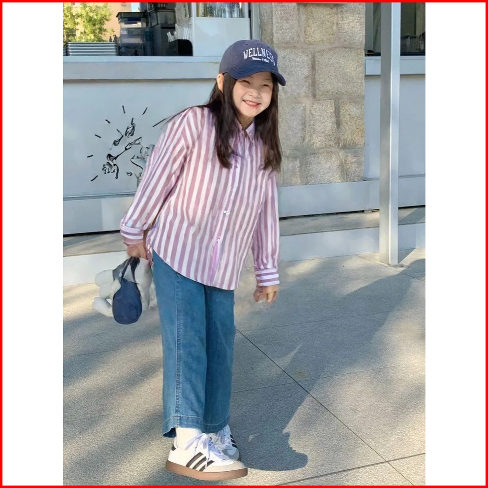 Kemeja Oversize Motif Salur Striped Anak Perempuan 3 - 10 Tahun